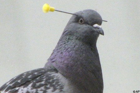 Luckily there were no pigeons in the bar that night, though this guy seems remarkably unfazed by his new head-gear. (image via AP)